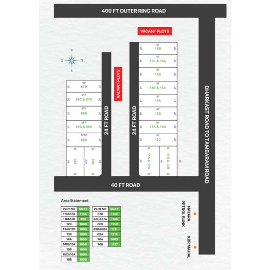 Rajiv Nagar from Value Reality is a thoughtfully planned CMDA-approved layout, tucked in the thriving heart of West Tambaram, just off Kishkintha Main Road. This prime location gives you seamless access to the 400ft Outer Ring Road and Maduravoyal Bypass Service Road — making every commute smooth and every city connection just minutes away.This Gated community offers well-proportioned plots ranging from 966–1417 sq.ft, perfect for building the home your family deserves.